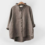 Découvrez notre chemisier avec volants au col, parfait pour allier confort et élégance en toutes occasions.
