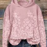Pull à capuche décontracté avec motif floral en 3D
