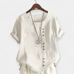 - Design élégant : Col rond et boutons pour un look raffiné.