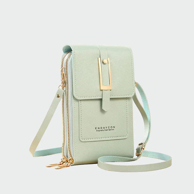 Petit sac bandoulière en vert doux alliant élégance et modernité. Son rabattement avec un détail métallique doré ajoute une touche de sophistication, tandis que les doubles zips garantissent une organisation pratique et sécurisée. La bandoulière légère assure un transport confortable, parfait pour vos promenades quotidiennes ou voyages. Un accessoire qui incarne fraîcheur, style et fonctionnalité.