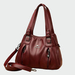 Sac à main bordeaux élégant conçu pour allier style et confort à chaque occasion. Fabriqué en simili cuir durable de haute qualité, il se distingue par son design moderne et ses détails raffinés.
