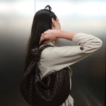 Fabriqué en cuir vegan de haute qualité, il est léger et polyvalent, s'adaptant à tous vos styles. Son tressage caractéristique et son anse artistiquement nouée ajoutent une touche d'élégance à votre look.