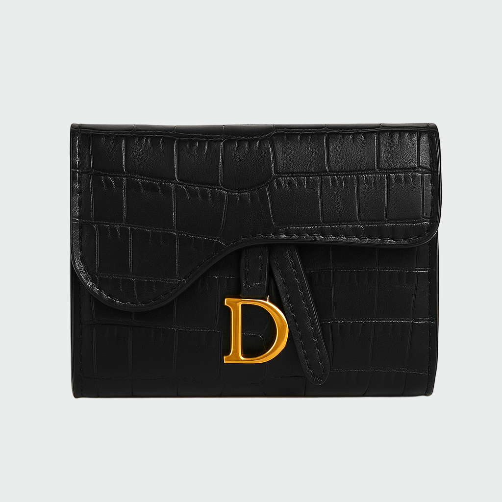 Découvrez notre portefeuille élégant en noir, conçu avec une texture gaufrée rappelant le cuir de crocodile. Son design moderne est rehaussé par un fermoir métallique doré, ajoutant une touche de luxe à votre style.