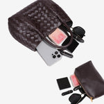 Découvrez le sac tissé à bandoulière Mariana, alliant une texture douce et luxueuse à une praticité maximale. Fabriqué en cuir vegan de haute qualité, son design polyvalent est complété par une bandoulière amovible pour un transport facile.