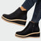 Bottines en cuir pour femmes avec plateforme de couleur noire, alliant élégance et confort. Leur design minimaliste et fermeture éclair latérale garantissent un enfilage facile, tandis que la semelle compensée stable offre de la hauteur sans fatigue.