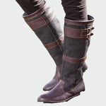 Bottes hautes de équitation pour femmes en marron et gris foncé, alliant élégance et praticité.