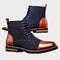 Découvrez nos bottines en cuir pour hommes avec lacets, alliant une élégante combinaison de bleu marine et de marron pour une allure intemporelle. La finition brillante marron à l'avant et au talon confère un caractère premium, tandis que la semelle résistante garantit une excellente adhérence.