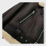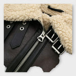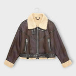 Veste Courte en Cuir avec Doublure en Fourrure et Ceinture