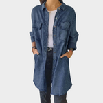 La Robe Chemise en Denim est l'indispensable de toute garde-robe. Polyvalente et stylée, elle se porte confortablement comme une robe avec des baskets pour un look décontracté, ou comme une chemise longue/veste sur votre jean et top préférés.