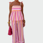 Mettez en valeur votre style estival avec cet ensemble frais alliant confort et élégance.