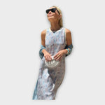Maxi Robe à Motifs Linéaires et Coupe Aérienne