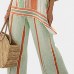 Fraîcheur estivale avec une touche artistique. L'ensemble Daisy allie confort et style avec une blouse à rayures multicolores et des pantalons amples assortis.
