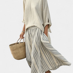 Ensemble Décontracté Daisy : Blouse Oversize et Jupe Midi Rayée en Lin Bambou pour un Look Élégant et Confortable