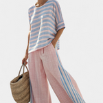 Douceur et légèreté à chaque pas avec l'ensemble Daisy, une combinaison parfaite de style et de confort. Ce look estival, composé d'un top à lignes ondulées et d'un pantalon large et moelleux, est idéal pour les journées ensoleillées au bord de la mer.