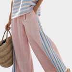 Ensemble en lin de bambou Daisy Méditerranéen rose doux avec rayures bleu ciel élégantes