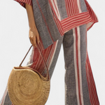 Salopette Oversize en Lin à Rayures Rouge Corail et Gris, Design Moderne et Confortable