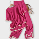 Avec sa coupe décontractée, cet ensemble est parfait pour un usage quotidien, tout en restant idéal pour des occasions plus élégantes.