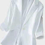 Veste Élégante avec une coupe intemporelle et un design moderne. Cette pièce incontournable dispose d'un col à revers et d'une fermeture frontale avec un bouton, offrant une allure sophistiquée. Ses longues manches sont embellies par des boutons décoratifs, ajoutant une touche de style. Parfaite pour des apparitions professionnelles ou des moments plus décontractés, cette veste apporte style et raffinement à chaque tenue.