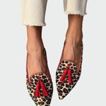 Mocassins pour femmes à ligne pointue avec un impressionnant motif animal et des franges décoratives sur le dessus. Ce design moderne allie élégance et caractère dynamique, offrant une pièce forte pour votre garde-robe.