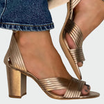 Élevez votre style avec ces sandales dorées à talon épais, alliant élégance et confort à chaque pas.