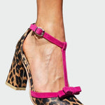 Élégance audacieuse : Ces escarpins avec imprimé animal et détails en fuchsia sont le choix parfait pour celles qui veulent se démarquer.