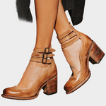 Rafraîchissez votre style avec les Bottines en Cuir Tabac à Talon Épais, la combinaison parfaite d'élégance et de confort.