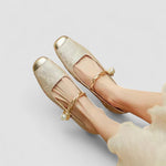 Découvrez le charme intemporel des chaussures en cuir Mary Jane Mestelle, fabriquées à la main avec du cuir de haute qualité. Alliant style vintage et charmante modernité, ces chaussures sont ornées d'une bride tressée avec perles, d'un bout en métal et d'un large talon légèrement brillant pour une touche d'éclat à chaque tenue.