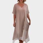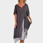 Dégagez élégance et confort avec cette robe asymétrique dans des nuances de bleu. Parfaite pour vos escapades estivales ou pour un style quotidien, elle allie une coupe décontractée à des détails raffinés.