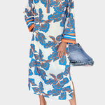Rafraîchissez votre style avec ce kaftan confortable et impressionnant, parfait pour les journées ensoleillées. Sa couleur écrue est rehaussée de vives motifs floraux bleus et oranges qui attirent tous les regards.