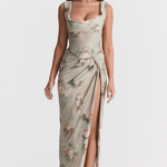 Découvrez notre robe impressionnante et sensuellecoupe ajustée épouse parfaitement votre silhouette, tandis qu'une fente dramatique sur la jambe ajoute une touche irrésistible de charme.