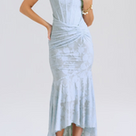 Le bustier sculpté offre un soutien parfait tout en mettant en valeur votre silhouette féminine. Les plis bien conçus à la taille accentuent vos courbes, tandis que la jupe asymétrique apporte un mouvement luxueux à chaque pas.