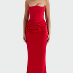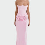 Découvrez notre robe impressionnante et sensuellebustier structuré sans bretelles et sa coupe ajustée, elle met en valeur vos courbes de manière élégante.