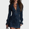 Rachel – Mini robe en velours bleu ornée de dentelle