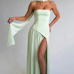Élégance intemporelle et féminité réunies dans cette robe maxi sans bretelles, parfaite pour vos soirées et occasions formelles.