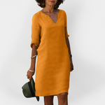Découvrez notre robe noire élégante, conçue avec un décolleté en V et une coupe confortable, alliant style et praticité au quotidien.