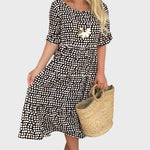 Mettez en valeur votre style estival avec cette robe aérienne qui allie des tons naturels à un motif discret. Une pièce qui offre confort et élégance à chaque pas.