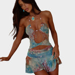 Affichez votre style estival avec cette robe mini à motif coloré. Son décolleté ouvert et ses découpes impressionnantes à l'avant vous garantissent une allure audacieuse et féminine, parfaite pour vos escapades insulaires et sorties nocturnes.