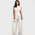 Élégance sculpturale avec une touche moderne : l'ensemble Sophia combine un haut asymétrique et un pantalon large pour une silhouette élégante et fluide.