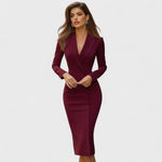 Découvrez la robe Célia, un parfait mélange d'élégance et de modernité. Conçue pour sublimer la silhouette féminine, sa coupe midi ajustée épouse les courbes avec raffinement. Avec son décollé en V et ses manches longues, elle est idéale pour le bureau comme pour les soirées.