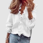 Faites briller votre style avec Lucy™ : le mélange parfait de raffinement et de confort. Cette chemise à manches longues, ornée de plis subtils, vous offre un look féminin et confiant, tandis que son tissu doux vous enveloppe d'un confort maximal tout au long de la journée.
